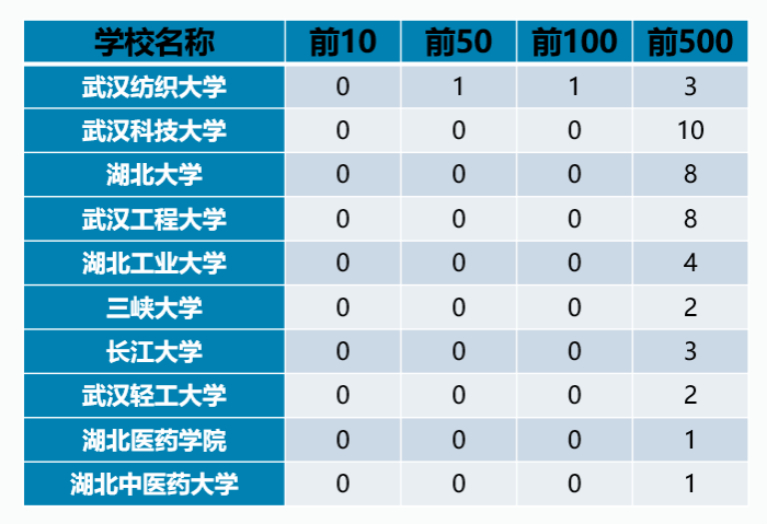 湖北省属高校上榜U.S. News2024-2025年度世界大学学科排名前500学科数统计表